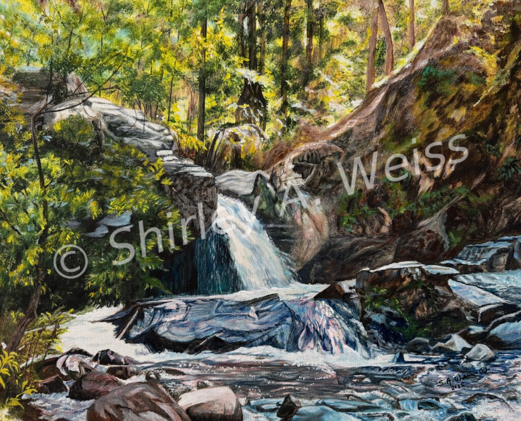 Categories 16" x 20" Flowers, Foliage, Other Landscapes & People Originals Mission Creek, B.C. Waterfall Post author By wp_admin Post date January 23, 2026 No Comments on Mission Creek, B.C. Waterfall Share This: Pricing Artwork Details Price Original Piece 16” x 20”. Acrylic on wrapped canvas $1,000.00 Tags B.C., landscape, water, waterfall ← Little Girl in White → Spring is Just Around the Corner (Weasel) Leave a Reply Cancel replyYour email address will not be published. Required fields are marked *Comment * Name * Email * Website Save my name, email, and website in this browser for the next time I comment.